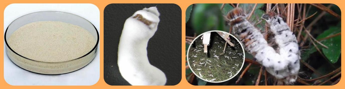 Beauveria bassiana: white or gry white powder. Harmless to humans and animals, and safe for fruits and vegetables.